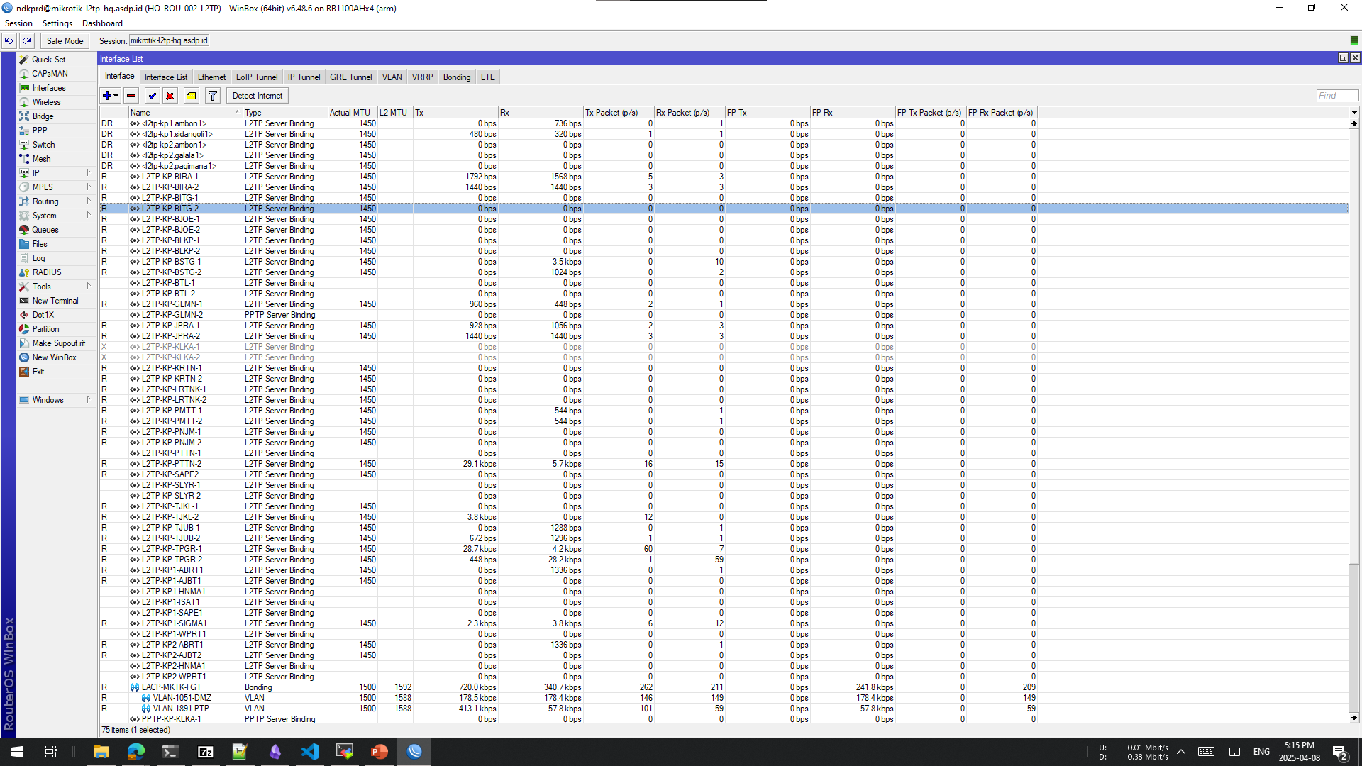 At the Mikrotik Hub, ensure that the L2TP tunnel between the Hub and Spoke is active. You can check the active L2TP interfaces under Interfaces and look for interfaces with the type L2TP Server Binding